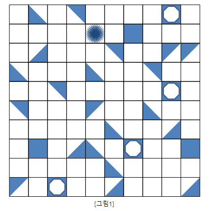 이러한 형태로 맵이 주어지며 0번은 빈공간 1~5번은 벽 6~10번은 웜홀 -1은 블랙홀입니다.